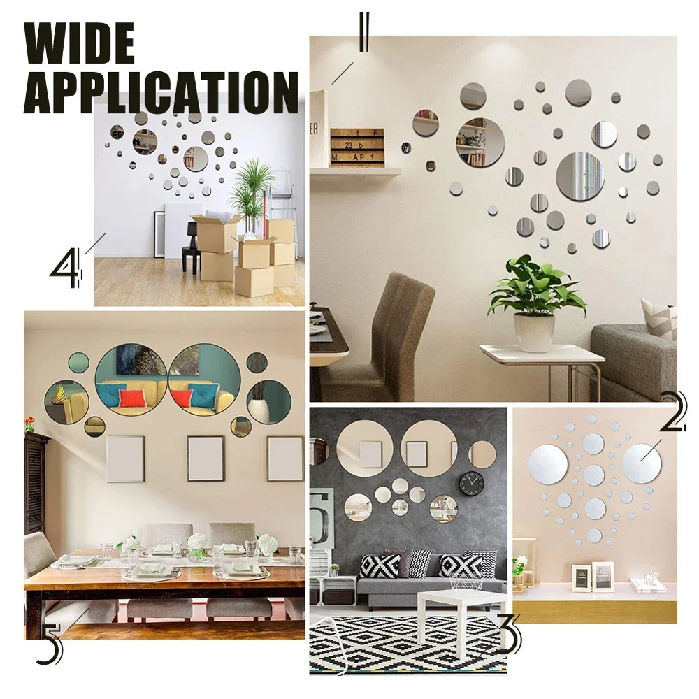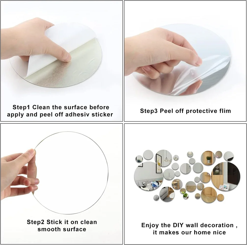Easy to use: The circular mirror decors are very easy to use.Clean the surface before apply. Peel off adhesive sticker.Stick it on clean smooth surface.Peel off protective flim.Clean the mirror surface.
